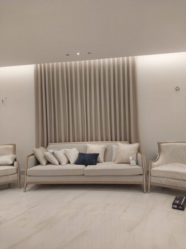 اطلب عينات من الأقمشة المختلفة وجربها في منزلك تحت الإضاءة الطبيعية والاصطناعية. الألوان تبدو مختلفة في بيئات الإضاءة المتنوعة. إذا كنت تخطط أيضًا لـ تفصيل ستائر أو تجديد المجلس، تأكد من تناسق الألوان والأنماط.